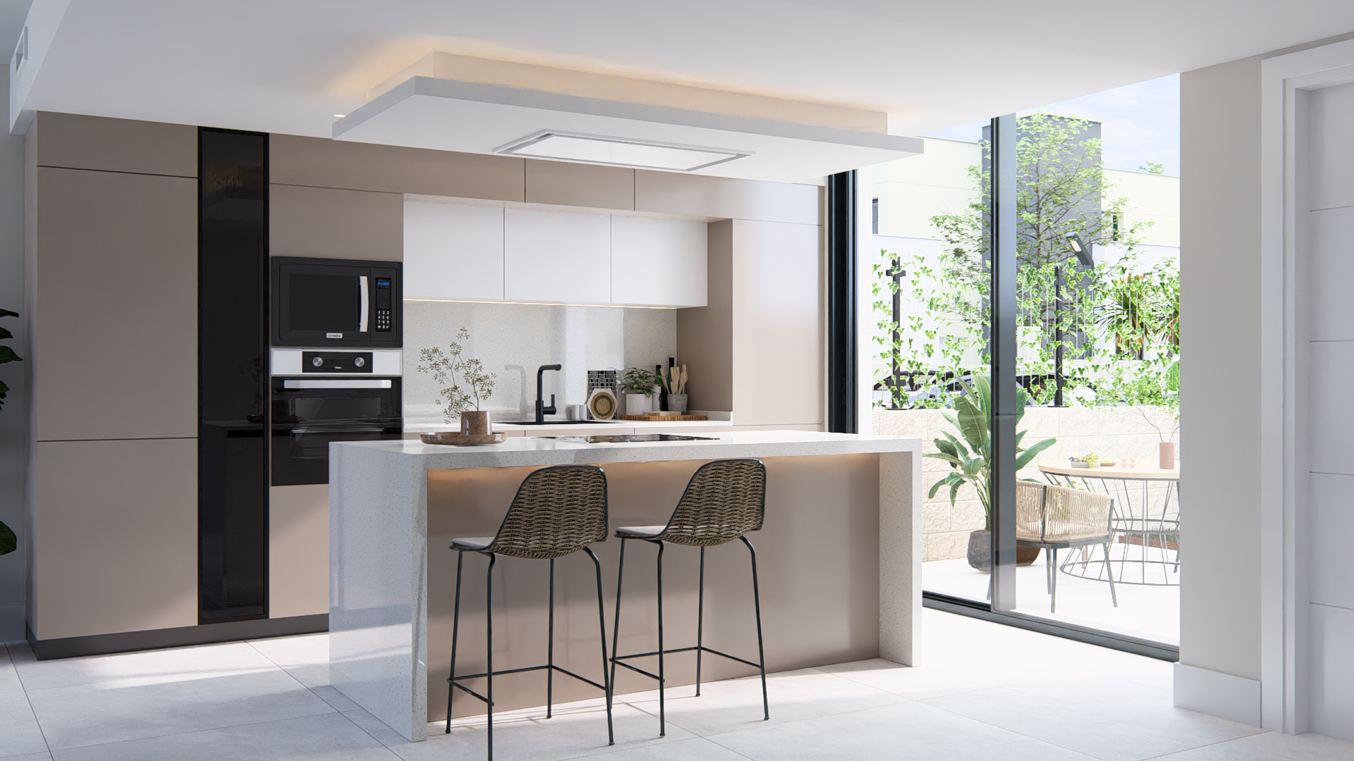 The kitchen in Marsala Villas I is meticulously designed to maximize space and ensure functionality.